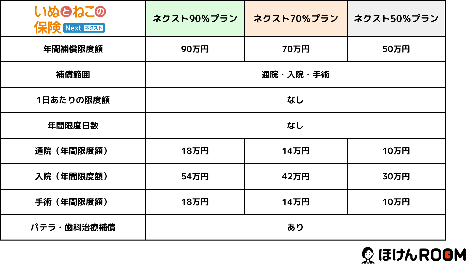 「いぬとねこの保険ネクスト」の補償内容と保険料